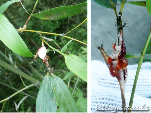 | 足がたくさん。赤の三角(▲):羽枝(うし)、青の三角(▲):巻枝。 |
