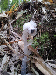 | ヒトクチタケの裏側。根元に穴があいている。あと、ちょろっとしっぽが・・・ |