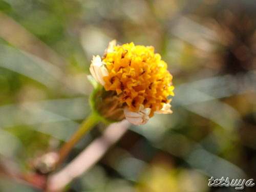 コセンダングサの仲間の花では、花序の周囲の花の花弁は白色、まん中付近の花の花弁は黄色をしている。周辺の花の白い花びらの伸び方に、いろいろ違いがあるようだ。