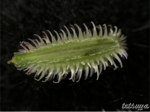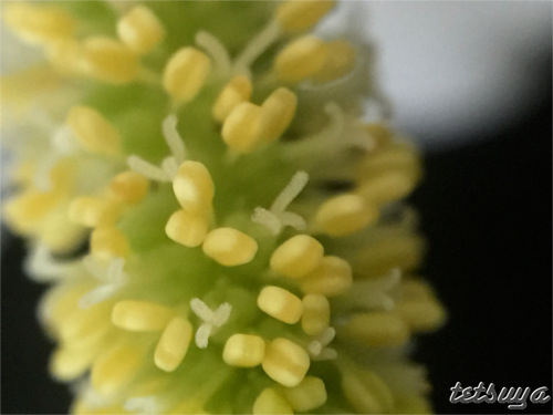 果実の方をiPhoneとマクロレンズで撮影。いわゆる「ひっつき虫」。動物の毛等に絡まって果実や種子を遠くへ運ばせるもの。たくさんのイゲイゲがあり、服等にもくっつく。